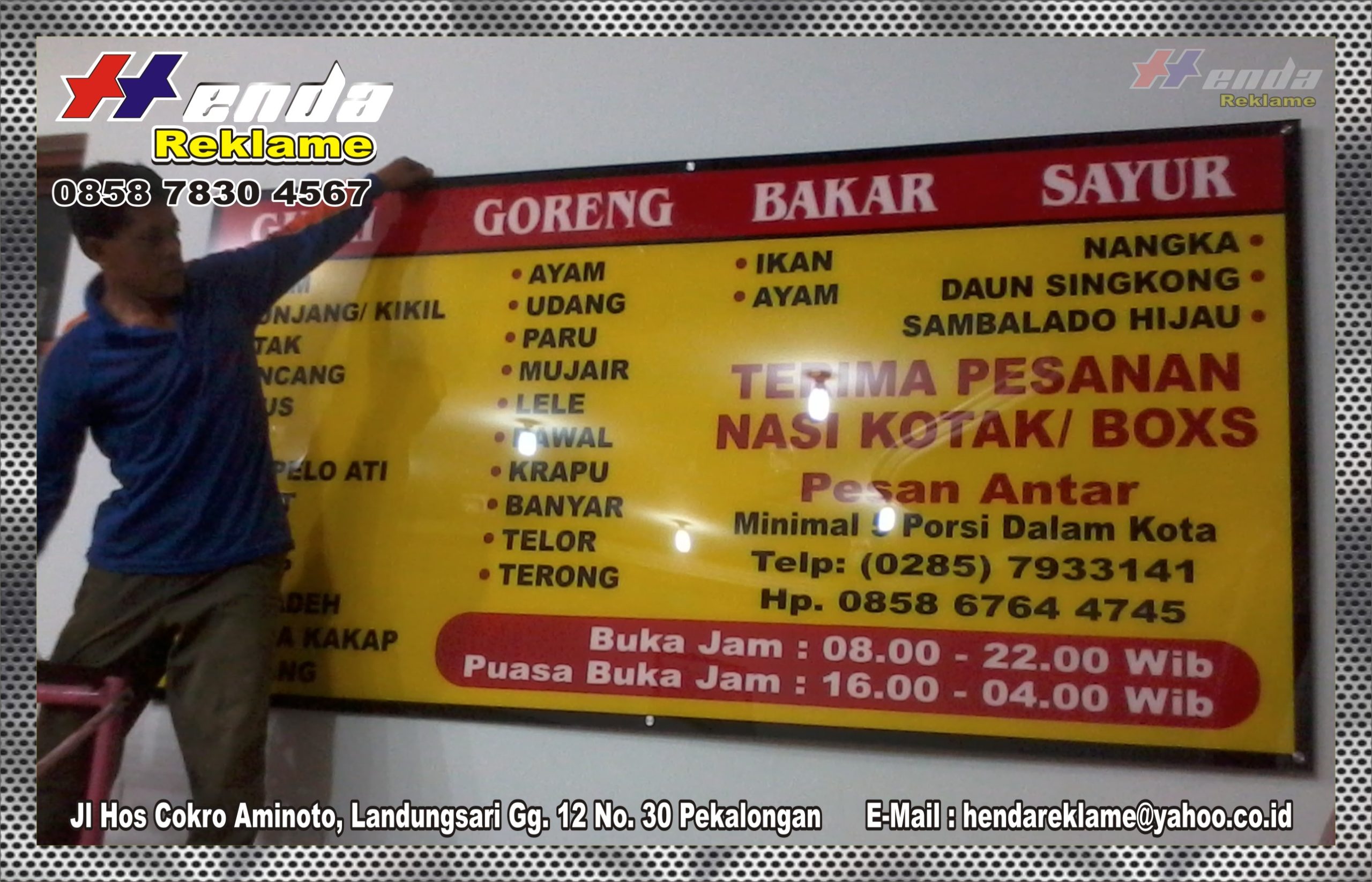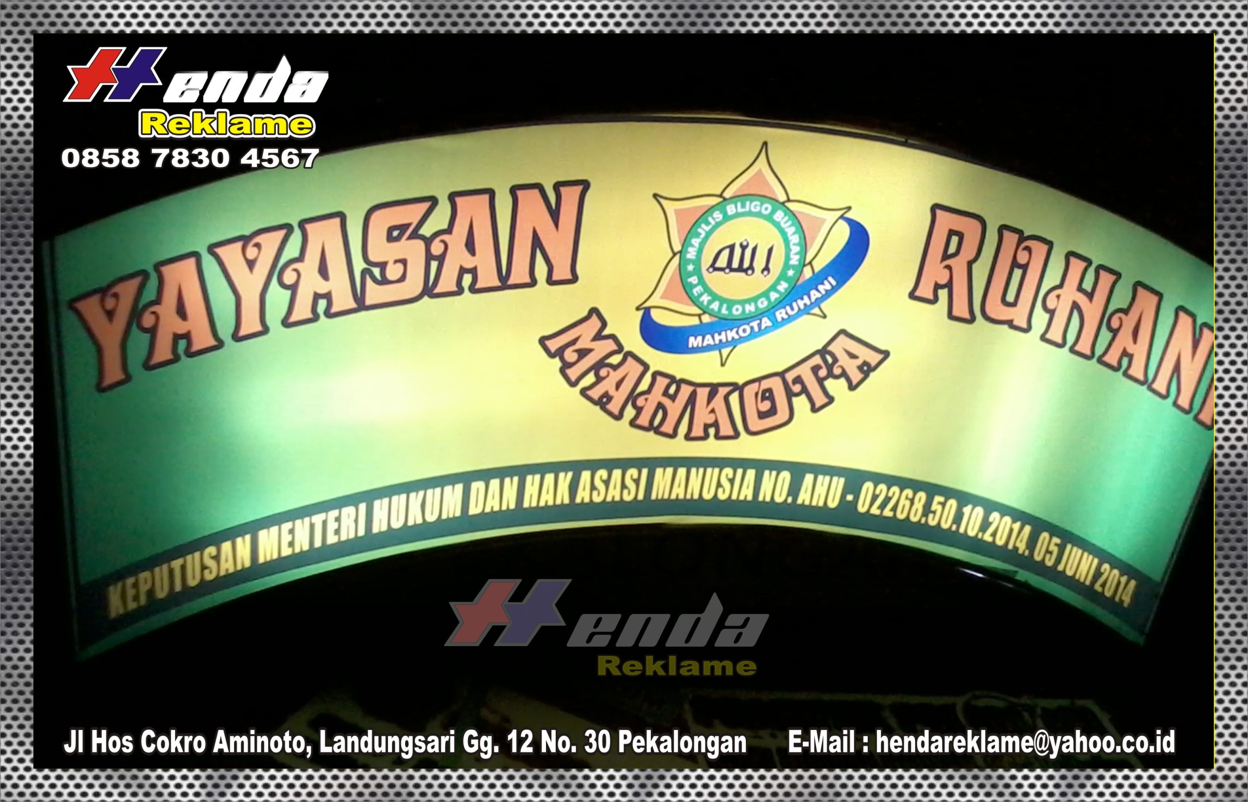 HENDA REKLAME adalah sebuah semangat yang telah kami bangun, dengan pondasi sebuah kerja yang kami upayakan secara profesional yang sekaligus untuk dikenal masyarakat, sesungguhnya kontribusi yang telah kami berikan tidak akan menghasilkan benevit yang sebesar-besarnya manakala tidak ada dukungan dari mitra kami